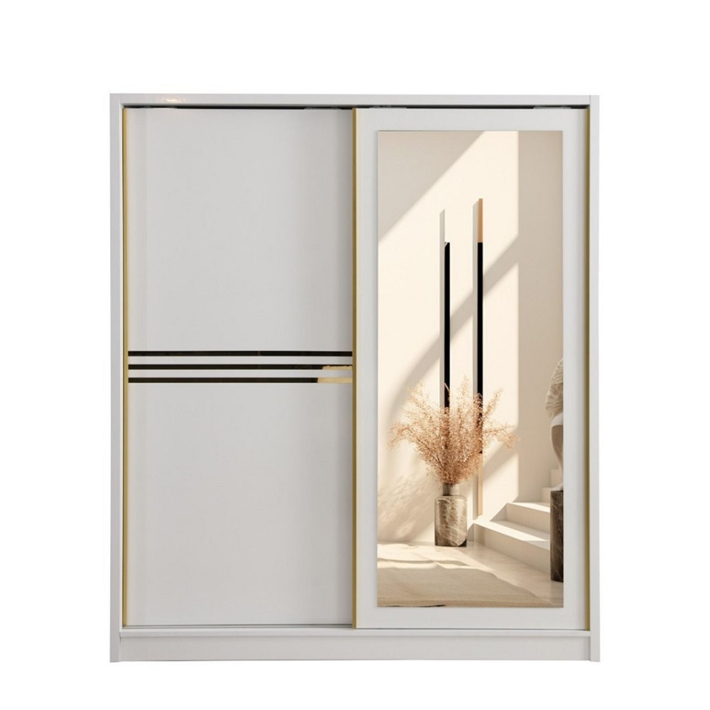 Profitez d’un rangement élégant et pratique grâce à l’armoire Malia avec ses portes coulissantes. Cette magnifique armoire ajoutera une touche de sophistication à votre espace tout en vous offrant une solution de rangement efficace pour vos vêtements et accessoires. Structure en bois laqué.Économisez de l’espace sans sacrifier le style avec l’armoire Malia.