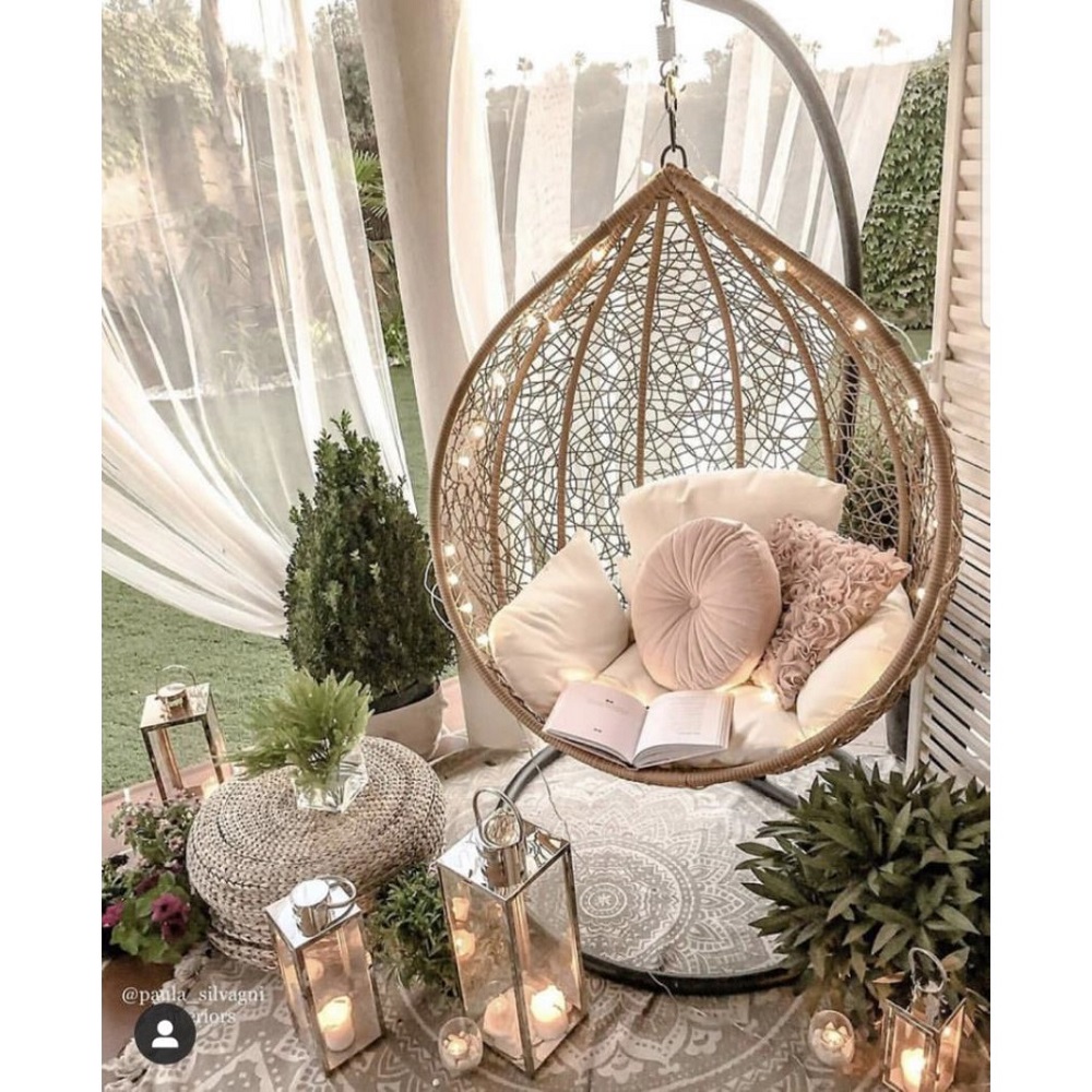 Magnifique balançoire fauteuil  moderne et tendance en forme d’œuf. Structure en metal. Pieds en metal. Plusieurs options couleurs au choix