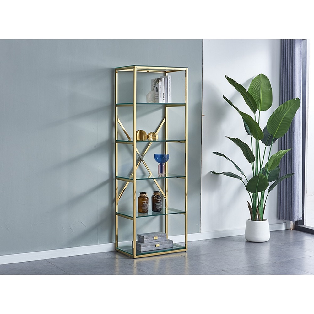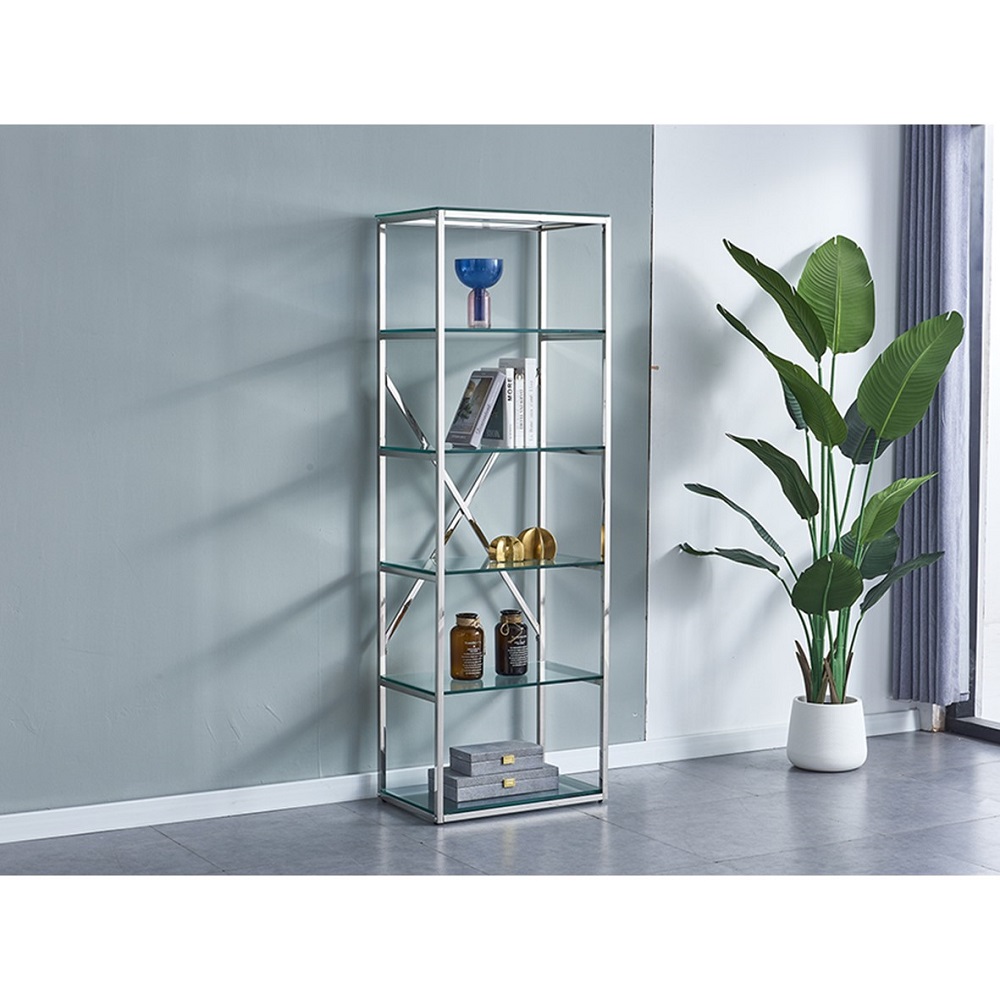 Magnifique meuble de rangement. Plateaux en verre. Structure en metal