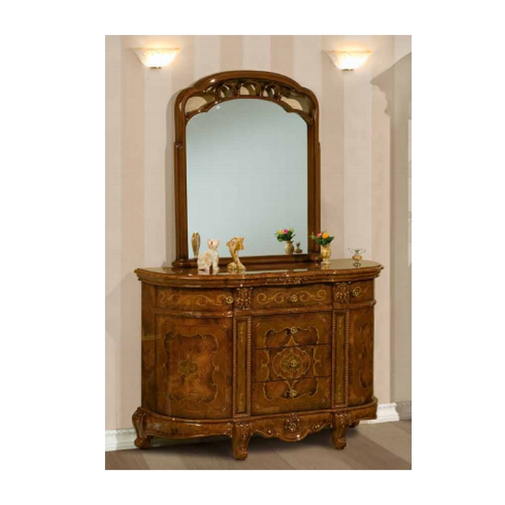 Magnifique buffet au design moderne idéal pour toute décoration salon. Structure en bois laqué. Vendu avec miroir au choix