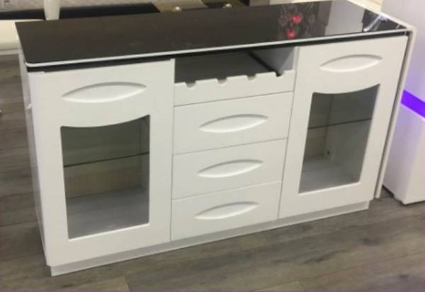 Elégant buffet de salon au meilleur rapport qualité prix. Structure laquée en bois panneaux de particules.