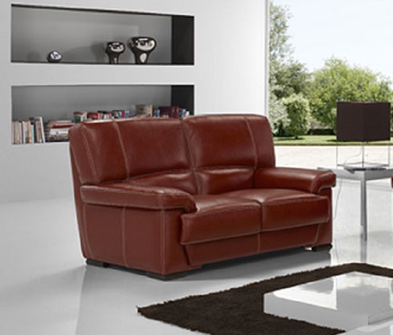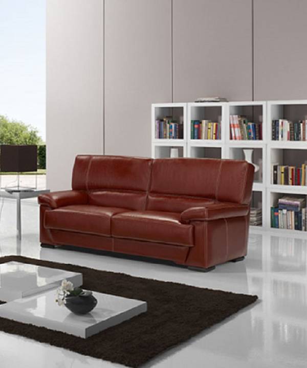 Canapé 100% cuir.Pieds en acier.Dossier et accoudoirs fixes et non déhoussables.
