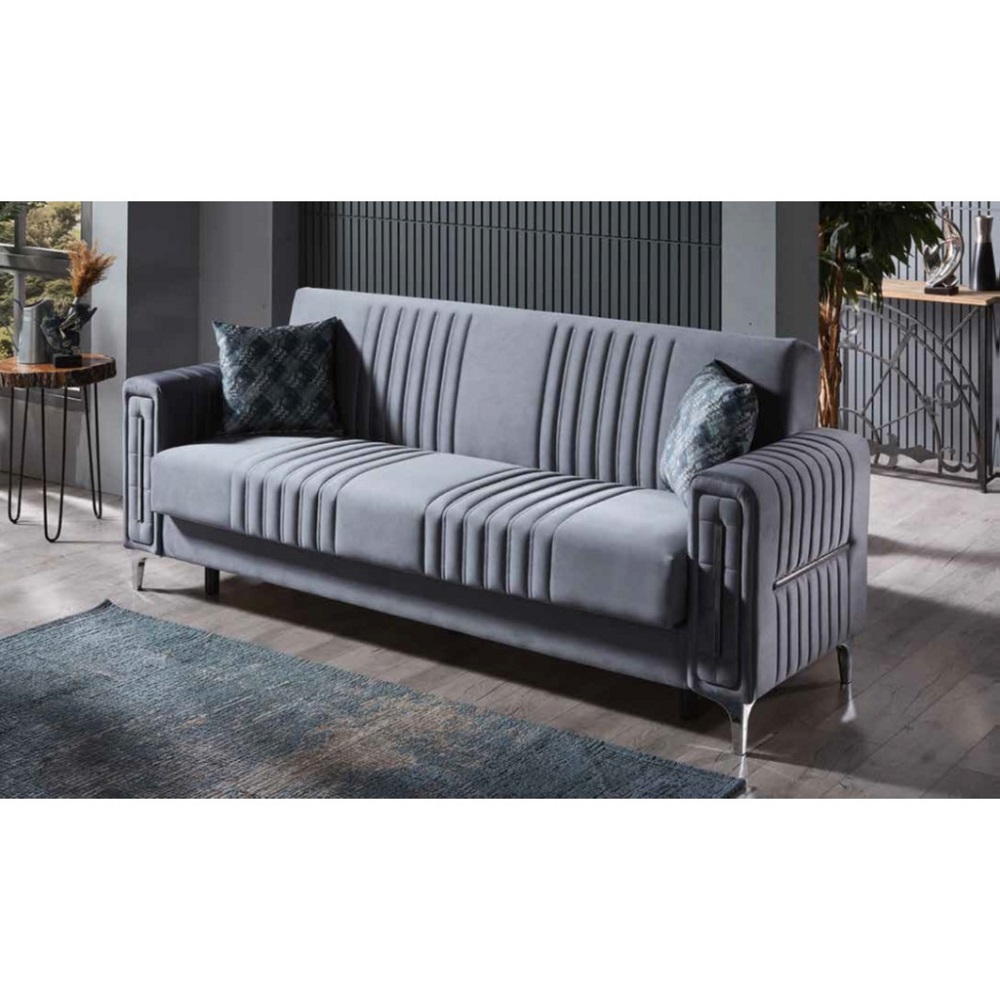 Le canapé convertible Moreno offre un style luxueux et fonctionnalité. Avec un magnifique revêtement en velours et une structure en bois panneaux de particules, ce canapé convertible s’intègrera parfaitement à votre espace de vie.