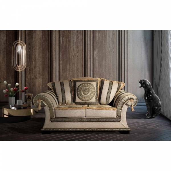 Magnifique canapé luxe au design moderne et tendance. Structure en bois panneaux de particules. Dossier central + coussins supérieurs : tissu Medusa 2048