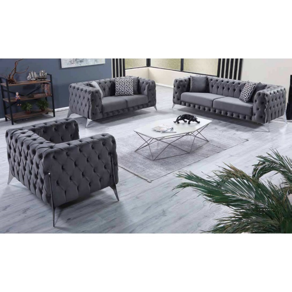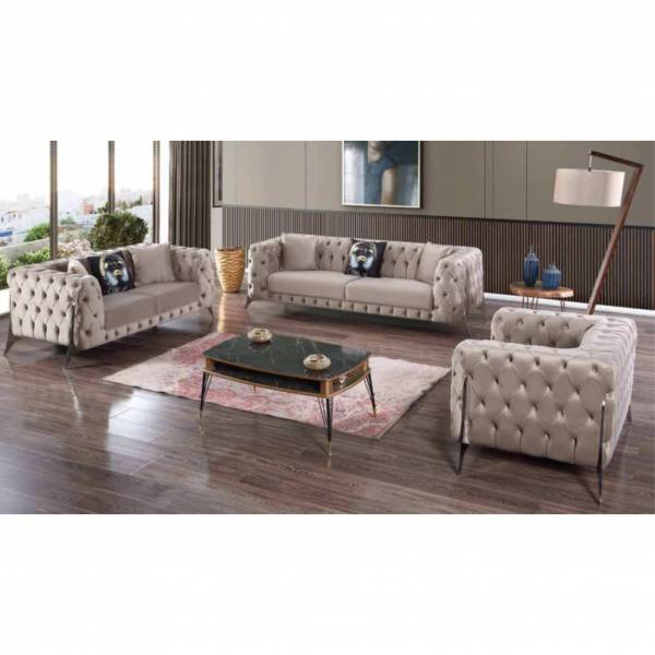Magnifique ensemble canapés 3+2+1 places moderne et tendance. Structure en bois panneaux de particules. Revêtement velours. Vendu sans coussins