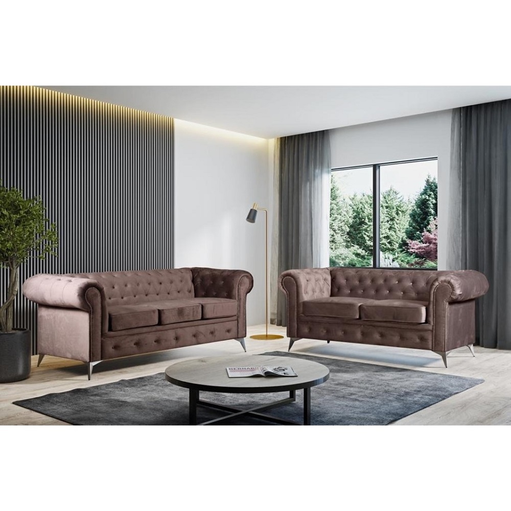 Magnifique canapé moderne style chesterfield. Structure en bois panneaux de particules. Revêtement velours.