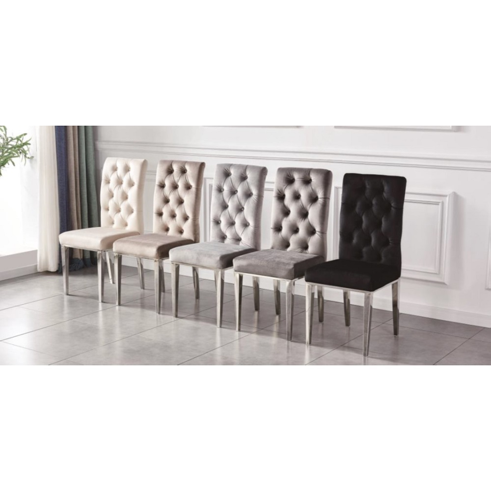 Magnifique chaise salle a manger au design moderne. Structure en métal. Revêtement dossier et assises en velours. Pieds en métal doré ou chromé.