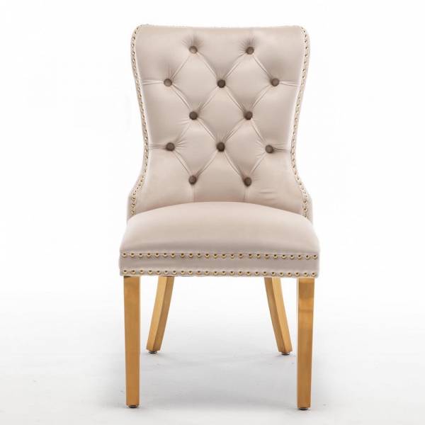 Magnifique chaise moderne à anneaux de salle à manger. Structure en metal doré. Revêtement velours