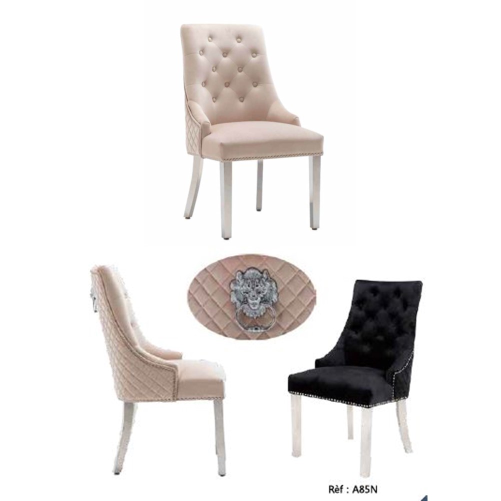 Magnifique chaise pour table à manger. S’adapte à tout style de décoration. Structure en metal et revêtement velours. Pieds en metal chromé