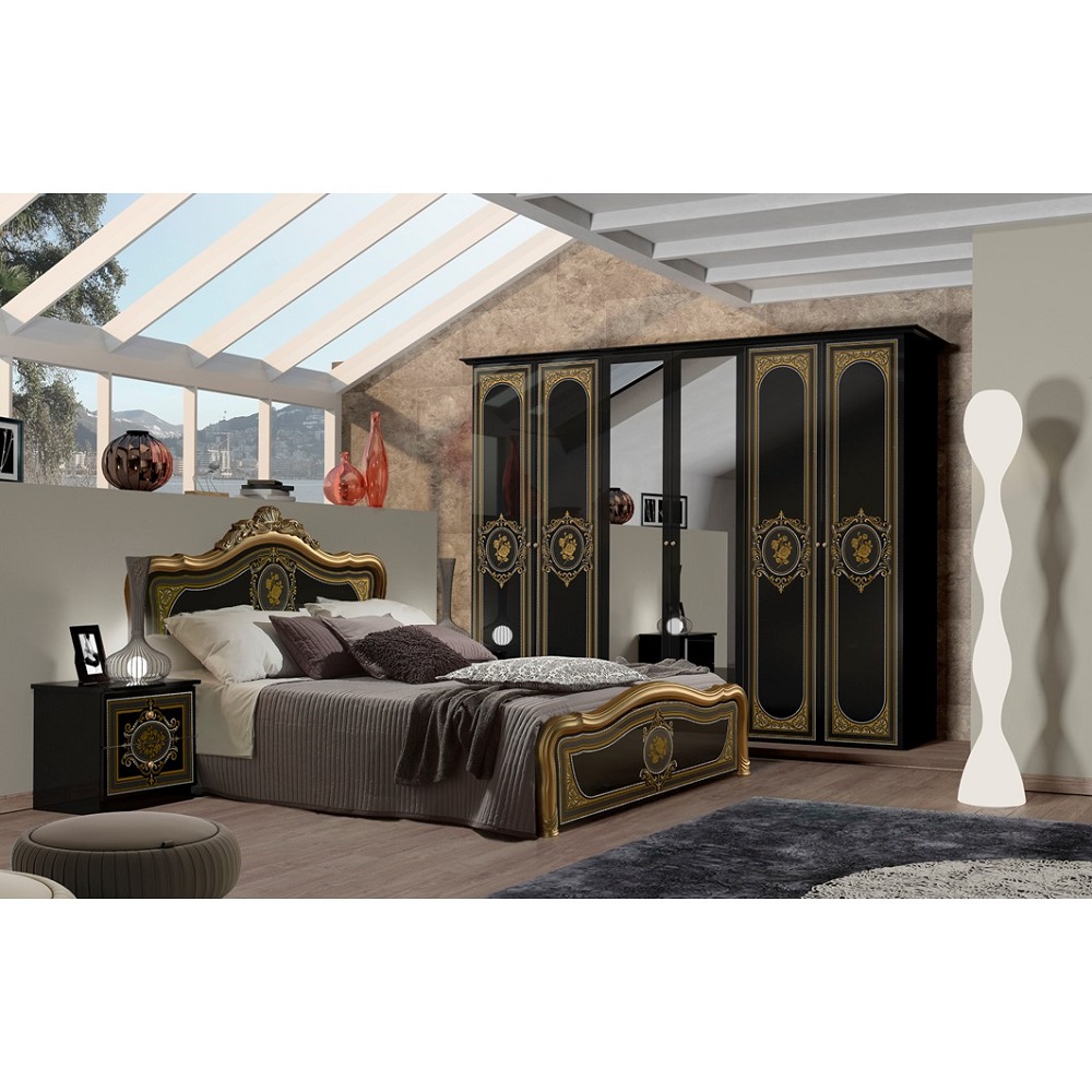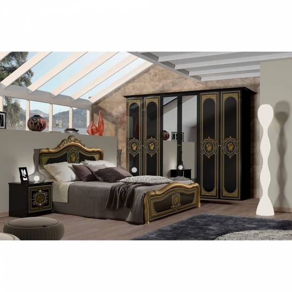 Magnifique chambre à coucher tendance au design néobaroque. Structure en bois laqué. Plusieurs options au choix. Tète de lit capitonnée en similis au choix