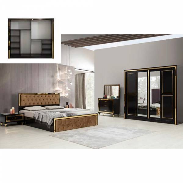 Composition: lit(160X200) +armoire 2 portes coulissantes + commode + 2 chevets + miroir.