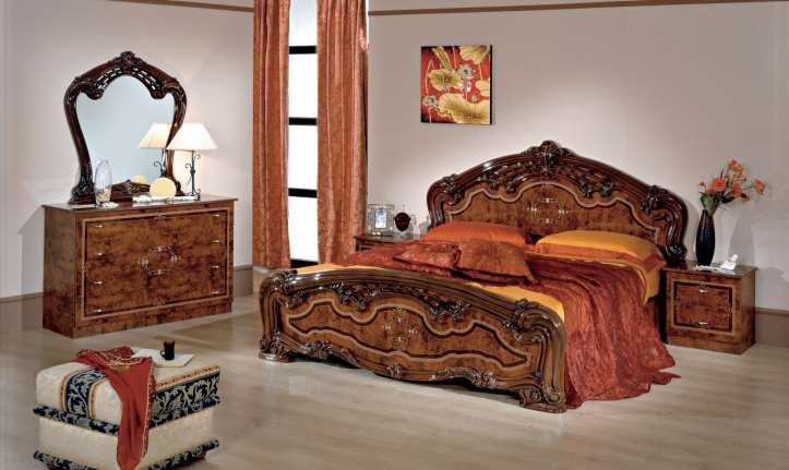 Ensemble de meubles comprenant: armoire 4portes + Lit(160X200CM) + 2chevets + commode + miroir