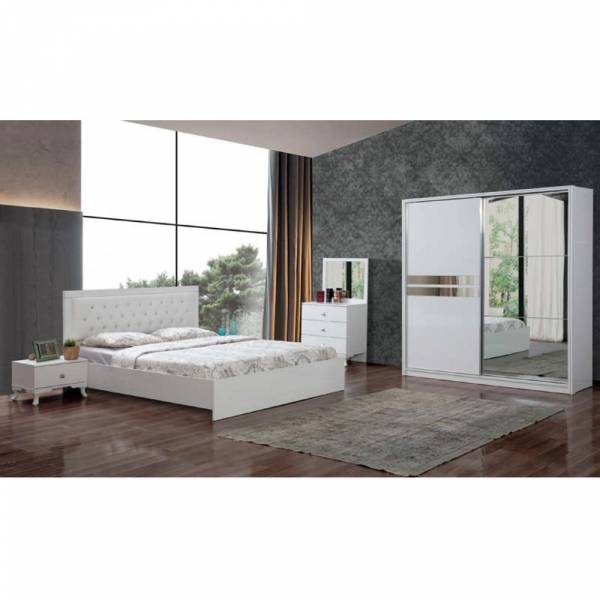 Composition: lit(160X200) +armoire 2 portes coulissantes + commode + 2 chevets + miroir.