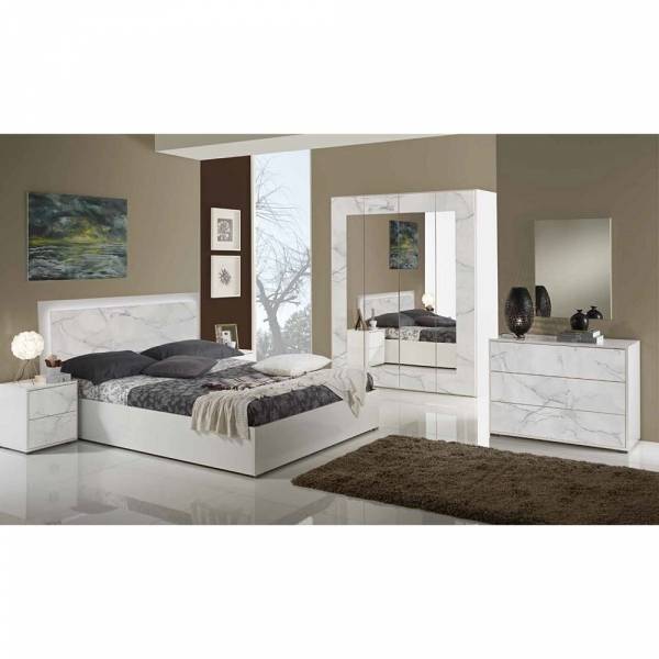 Composition: Lit(160X200) + armoire + commode + 2chevets + miroir