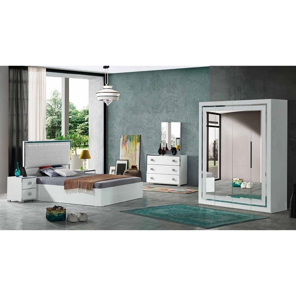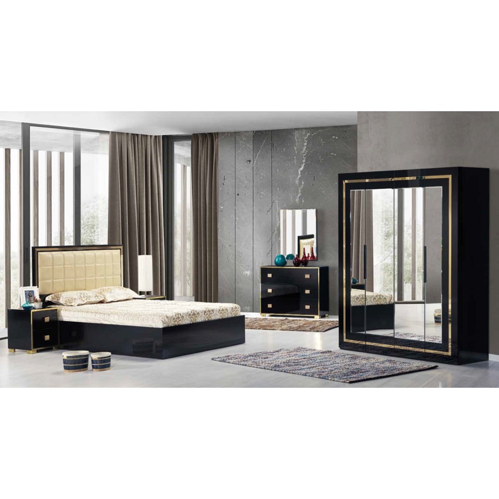 Composition: Lit(160X200) + armoire 4 portes + commode + 2chevets + miroir