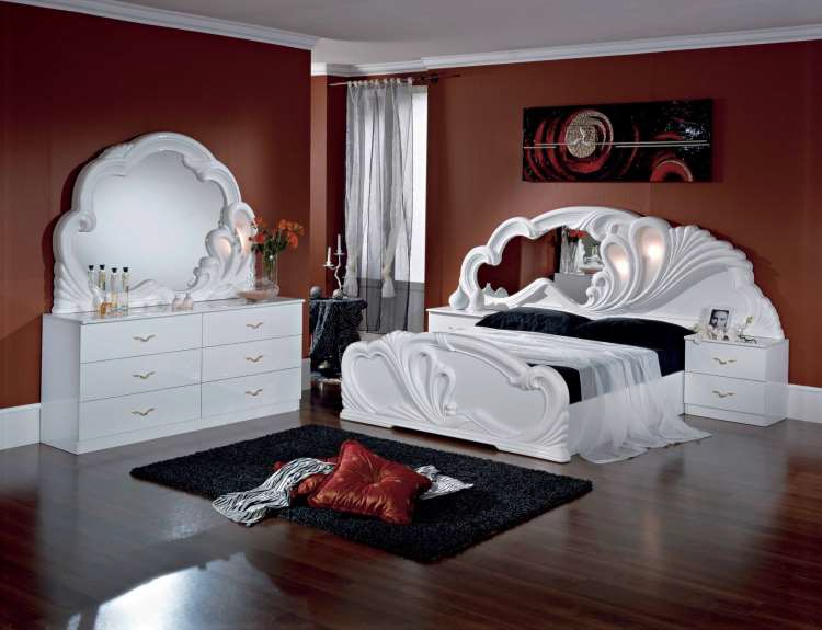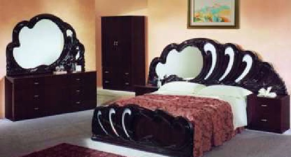 Ensemble de meubles comprenant: armoire 4portes + Lit(160X200CM) avec Led + 2chevets + commode + miroir