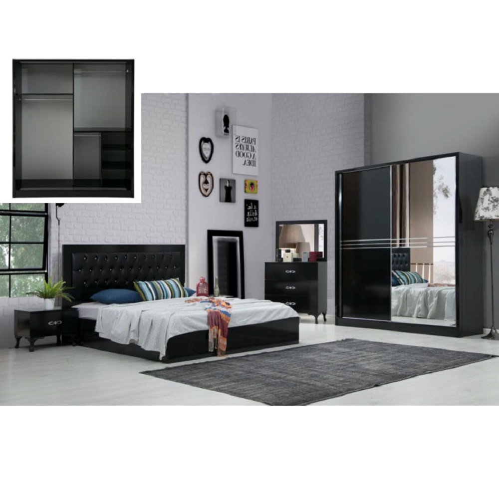 Composition: Lit(160X200CM) + armoire 2 portes coulissantes + commode + 2 chevets + miroir.