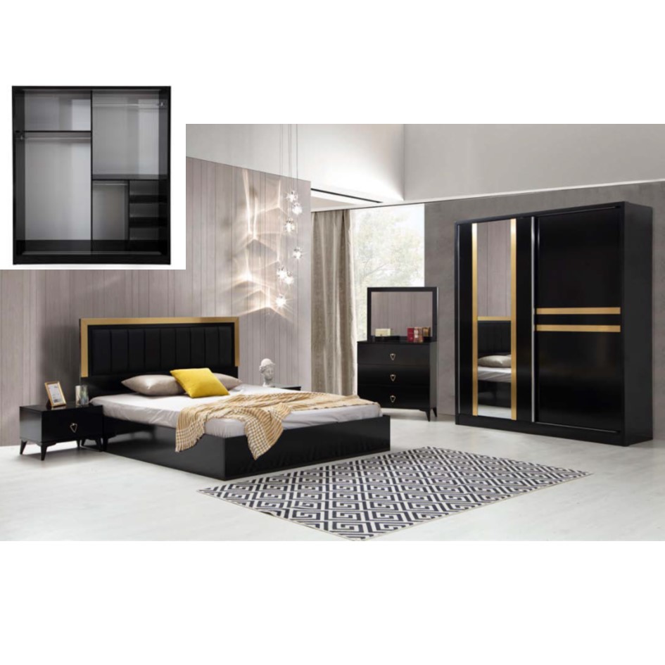 Composition: Lit(160X200CM) + armoire 2 portes coulissantes + commode + 2 chevets + miroir.