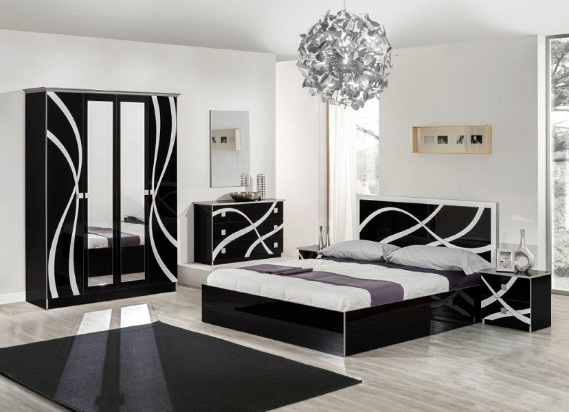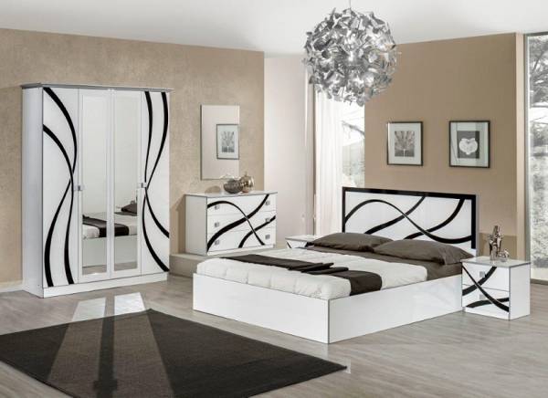 Magnifique chambre à coucher au design contemporain et laqué. Structure en panneaux de particules de bois.