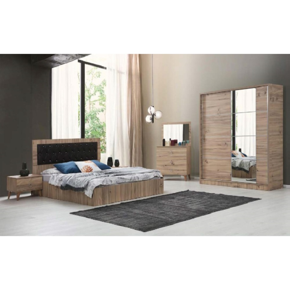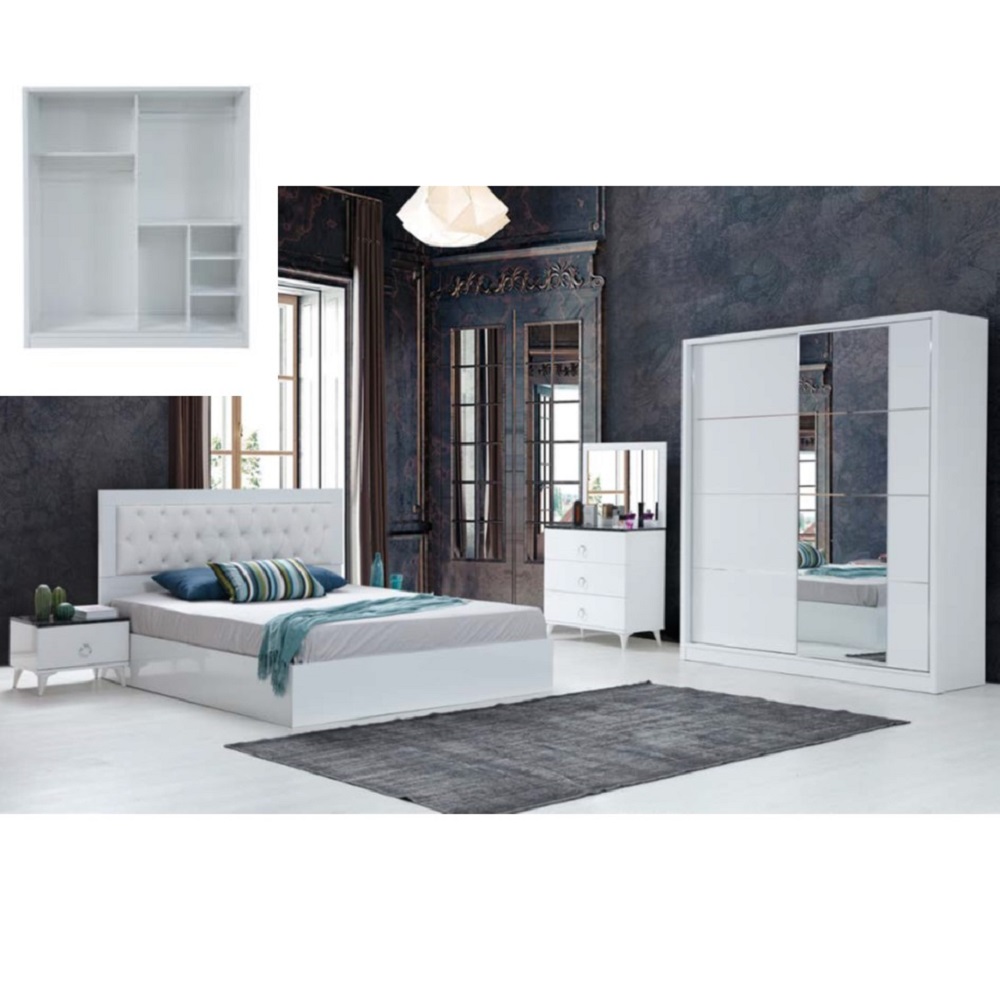 Composition: Lit(160X200CM) + armoire 2 portes coulissantes + commode + miroir + 2chevets.