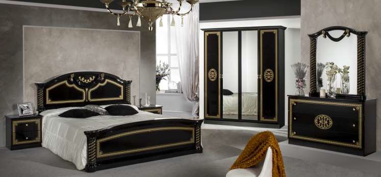 Ensemble de meubles comprenant: armoire 4portes + Lit(160X200CM) + 2chevets + commode + miroir