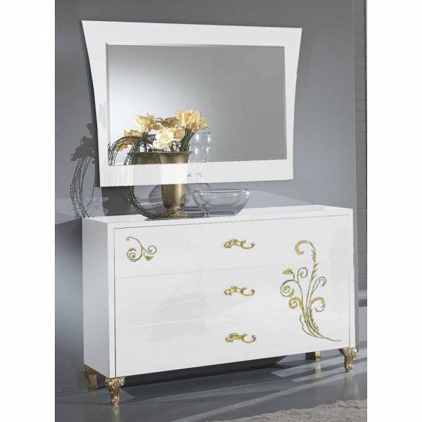 Magnifique commode à 3tiroirs luxe pour chambre adulte. Structure en bois laqué. Vendue au choix avec miroir