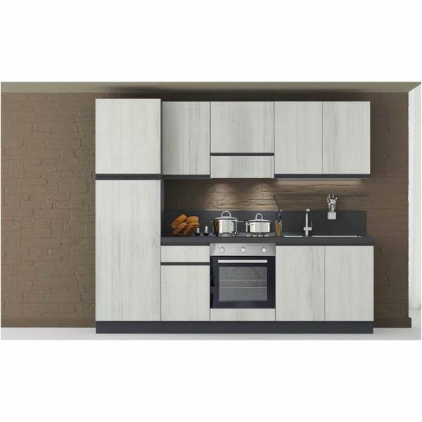 Magnifique cuisine équipée moderne de 2,55M. Structure en anthracite. . Meuble four et colonne inclus. Vendu sans électroménagers