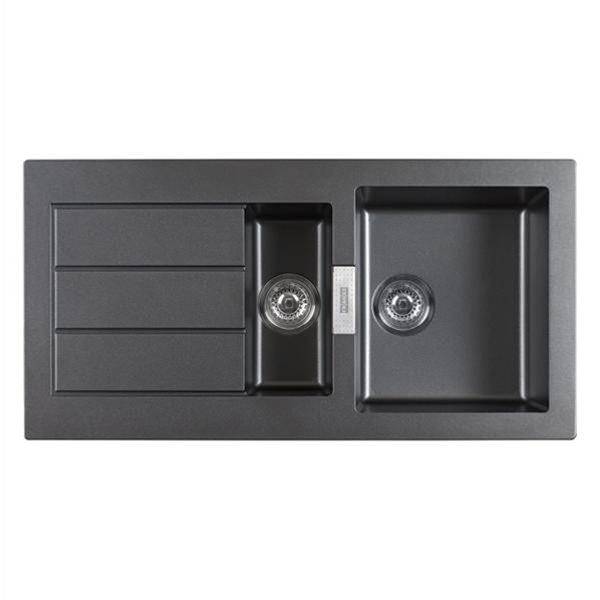Evier Sirius Tectonite 1,5 cuve : la Tectonite est composée de fibres de verre et de résine polyester. Ce matériau est léger, résistant aux chocs thermiques, aux produits chimiques et aux impacts. Hygiénique, sa surface non poreuse évite les dépôts de saleté. Un entretien avec une éponge douce et une crème liquide suffit. Recyclable à 100 %. Grâce aux avancées technologiques sur le matériau, Franke a mis au point le revêtement Lotus Sleeve : l’eau et les saletés glissent à la surface de l’évier pour une hygiène parfaite – Vidage Gain de place comprenant bondes manuelles Ø 90 inox et siphon – Pour caisson 60 cm – Coloris Carbone – Garantie 5 ans.