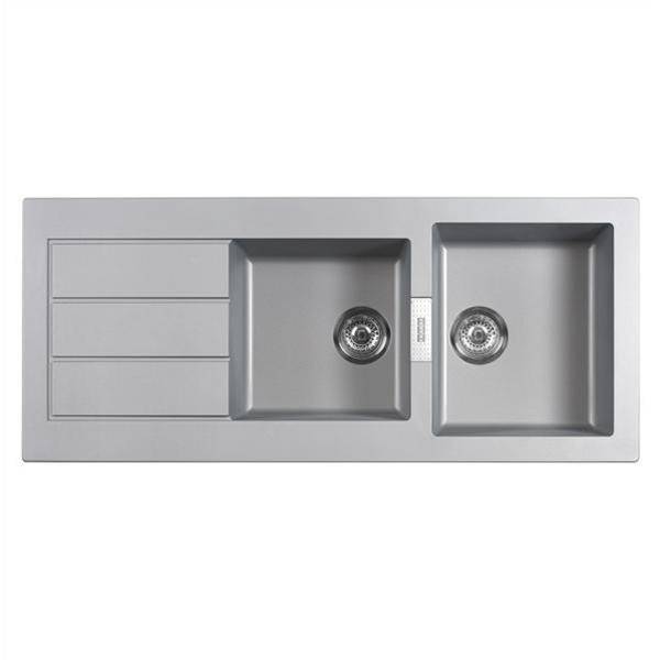 Evier Sirius Tectonite 2 cuves : la Tectonite est composée de fibres de verre et de résine polyester. Ce matériau est léger, résistant aux chocs thermiques, aux produits chimiques et aux impacts. Hygiénique, sa surface non poreuse évite les dépôts de saleté. Un entretien avec une éponge douce et une crème liquide suffit. Recyclable à 100 %. Grâce aux avancées technologiques sur le matériau, Franke a mis au point le revêtement Lotus Sleeve : l’eau et les saletés glissent à la surface de l’évier pour une hygiène parfaite – Vidage Gain de place comprenant bondes manuelles Ø 90 inox et siphon – Pour caisson 80 cm – Coloris Titanium – Garantie 5 ans.
