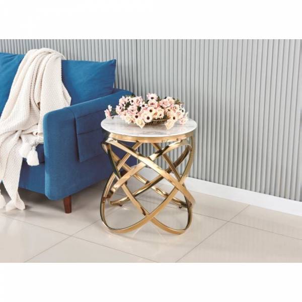 Magnifique guéridon rond moderne et tendance. Structure en métal. Plateau en marbre.