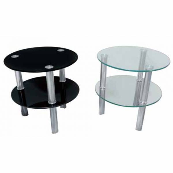 Elégant guéridon rond. Structure en metal. Plateau en verre fumé ou transparent.