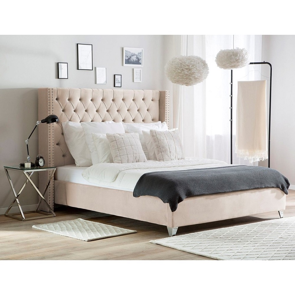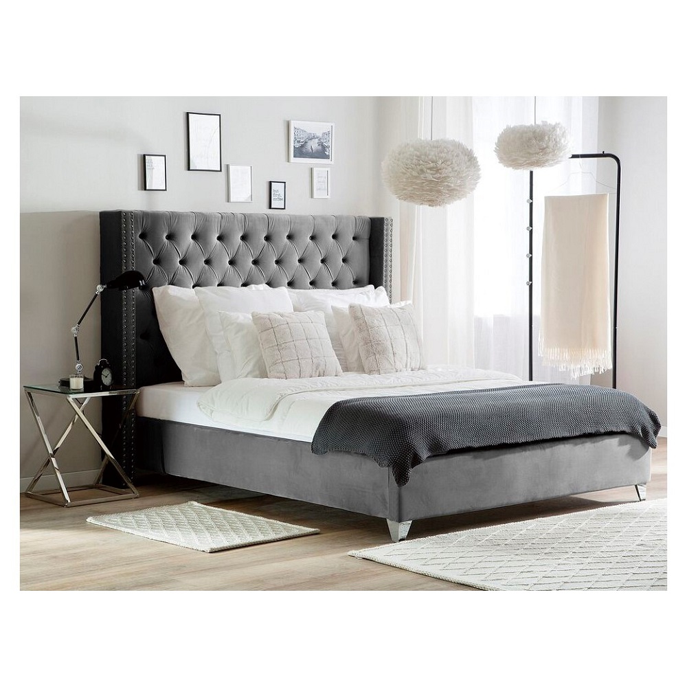 Magnifique lit 160X200 avec sommier lattes intégrés. Revêtement velours.
