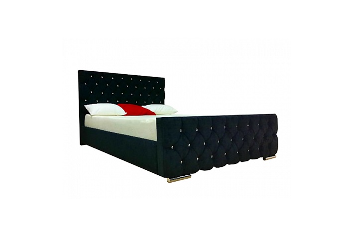 Lit avec coffre de rangement et sommier latte intégré. Structure en panneaux de particules, revêtement velours.Lattes renforcées avec pied central en metal.