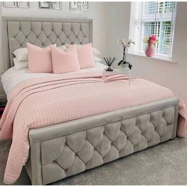 Magnifique lit adulte 140X190CM moderne. Structure en bois panneaux de particules. Revêtement velours. Vendu sans sommier .