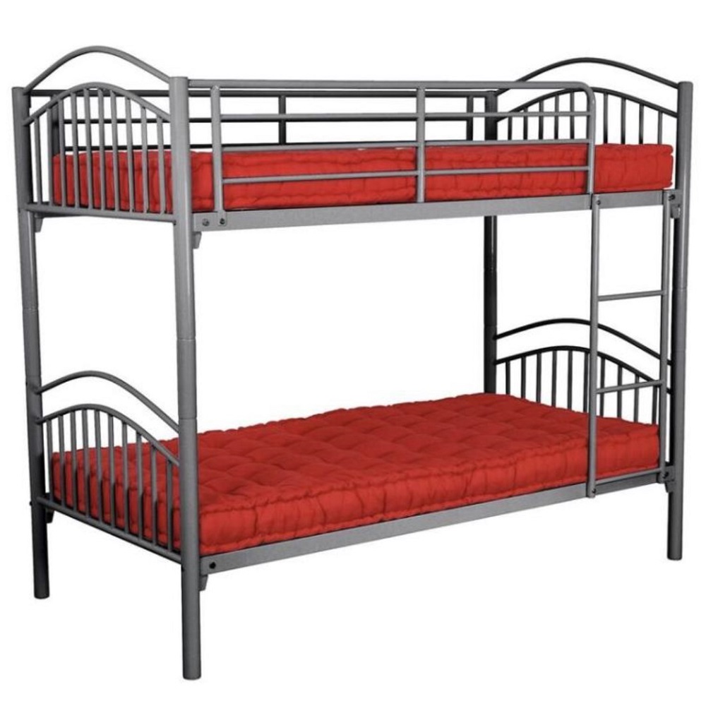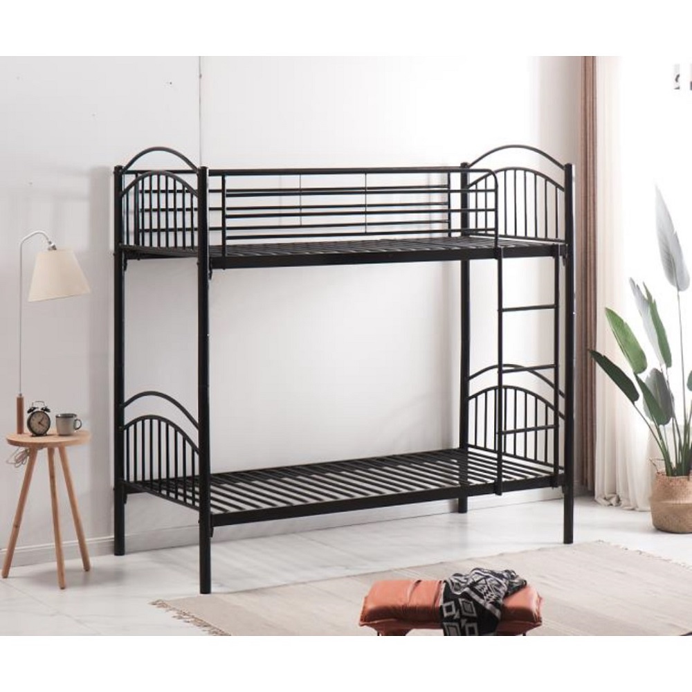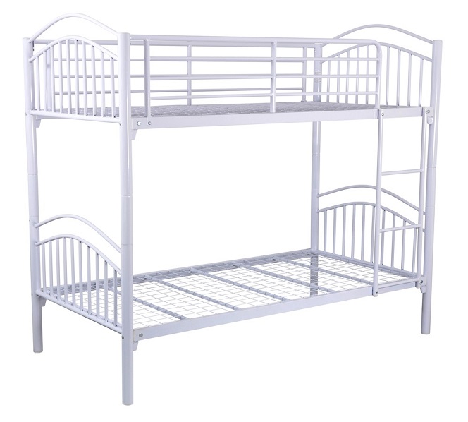 Lit métallique avec deux couchages de 90x190cm, section de 50mm en acier epoxy, sommier en tubes thermo soudés 22 lattes, échelle réversible. (90X190CM) bas et (90X190CM)haut.