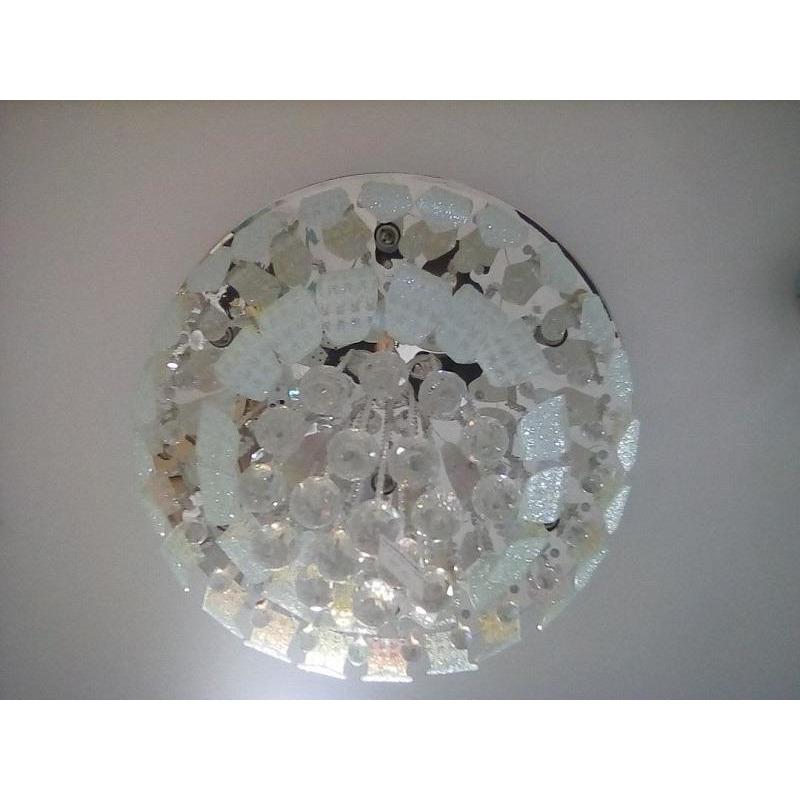 Lustre au design contemporain. Possède en son milieu des suspensions de boules en cristal.