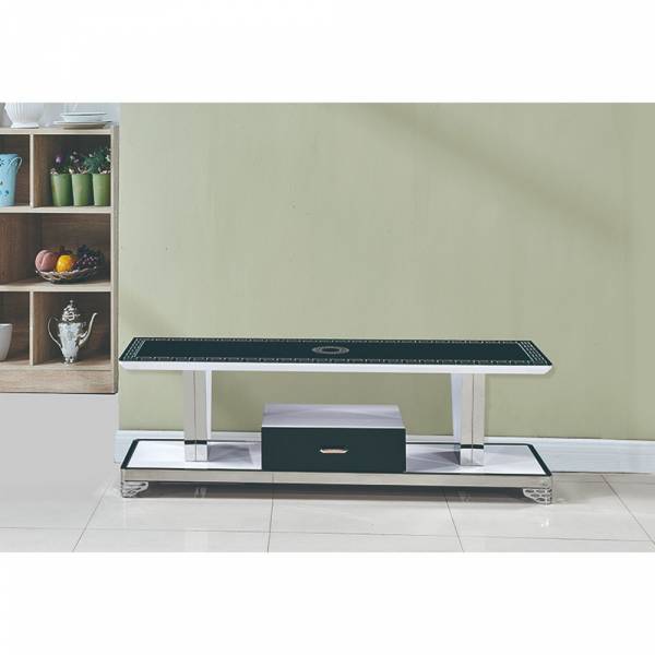 Magnifique meuble TV en metal. Design moderne. Plateau en verre. coffre à tiroir intégré