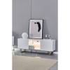 Découvrez notre élégant meuble TV Emilio qui allie à la fois un design raffiné et une structure en bois laqué de haute qualité. Son piétement en métal lui confère une solidité et une stabilité sans pareil.