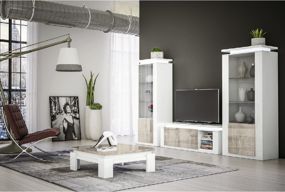 Magnifique meuble TV au design moderne. Structure en bois. Vendu au choix avec colonne et table basse