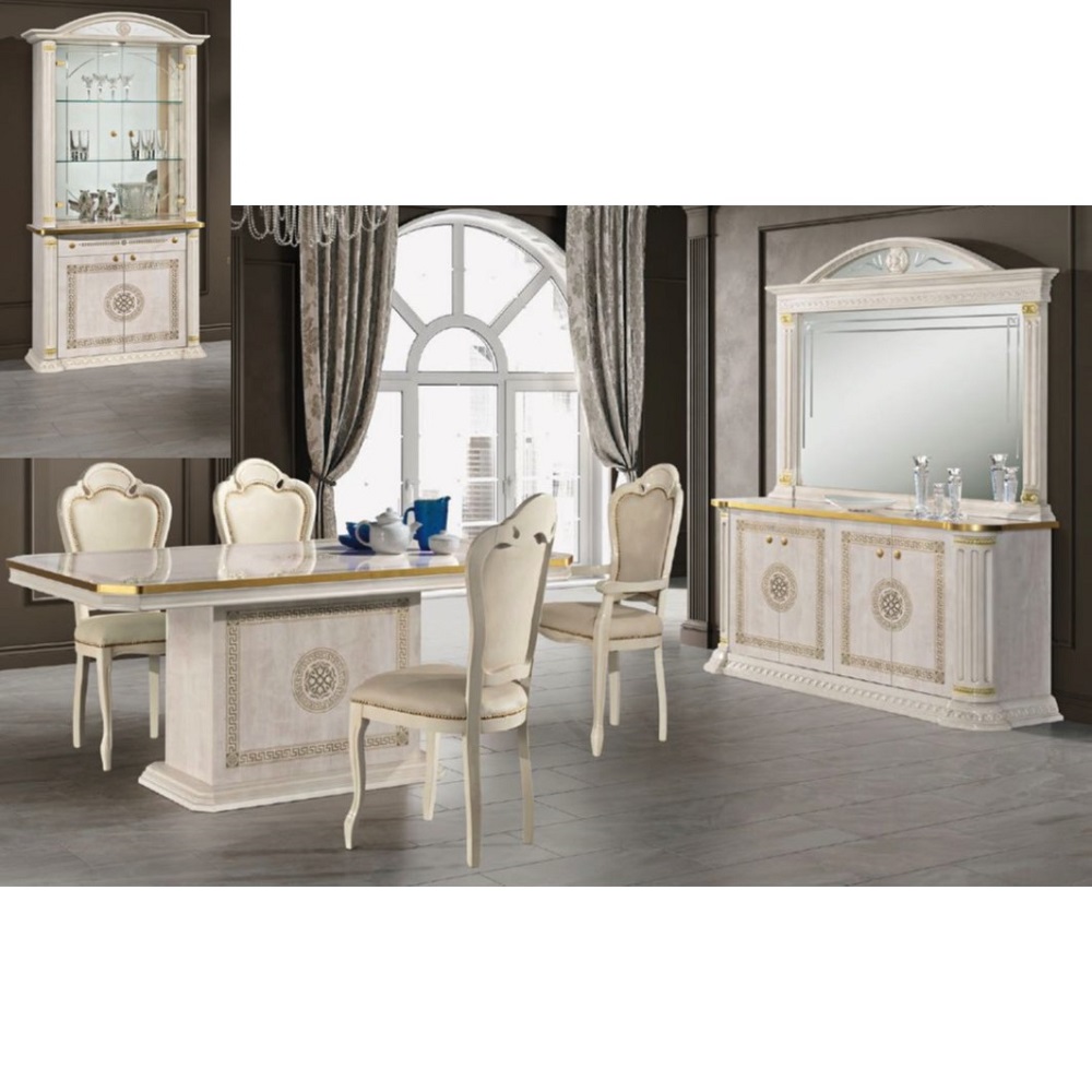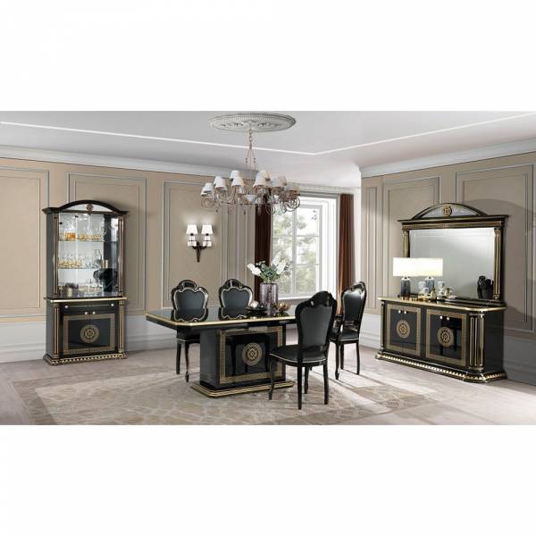 La salle à manger Aurora offre un look moderne et élégant. La table est conçue avec une finition en laque et dispose d’une extension pour s’adapter à vos besoins. Une pièce splendide qui complètera parfaitement votre salon. Revêtement chaise en similis.