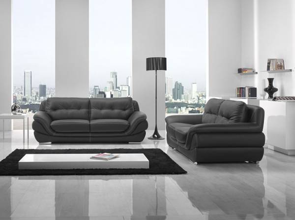 Salon cuir composé de canapés 3 et 2places