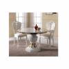 Magnifique table à manger au design néobaroque. Structure en bois laqué. Sa couleur brillante apportera du punch à la décoration de votre intérieure. Table rectangulaire rallonge de 45cm et table ronde rallonge de 40cm. Revêtement chaise en tissu. Vendue au choix avec chaise