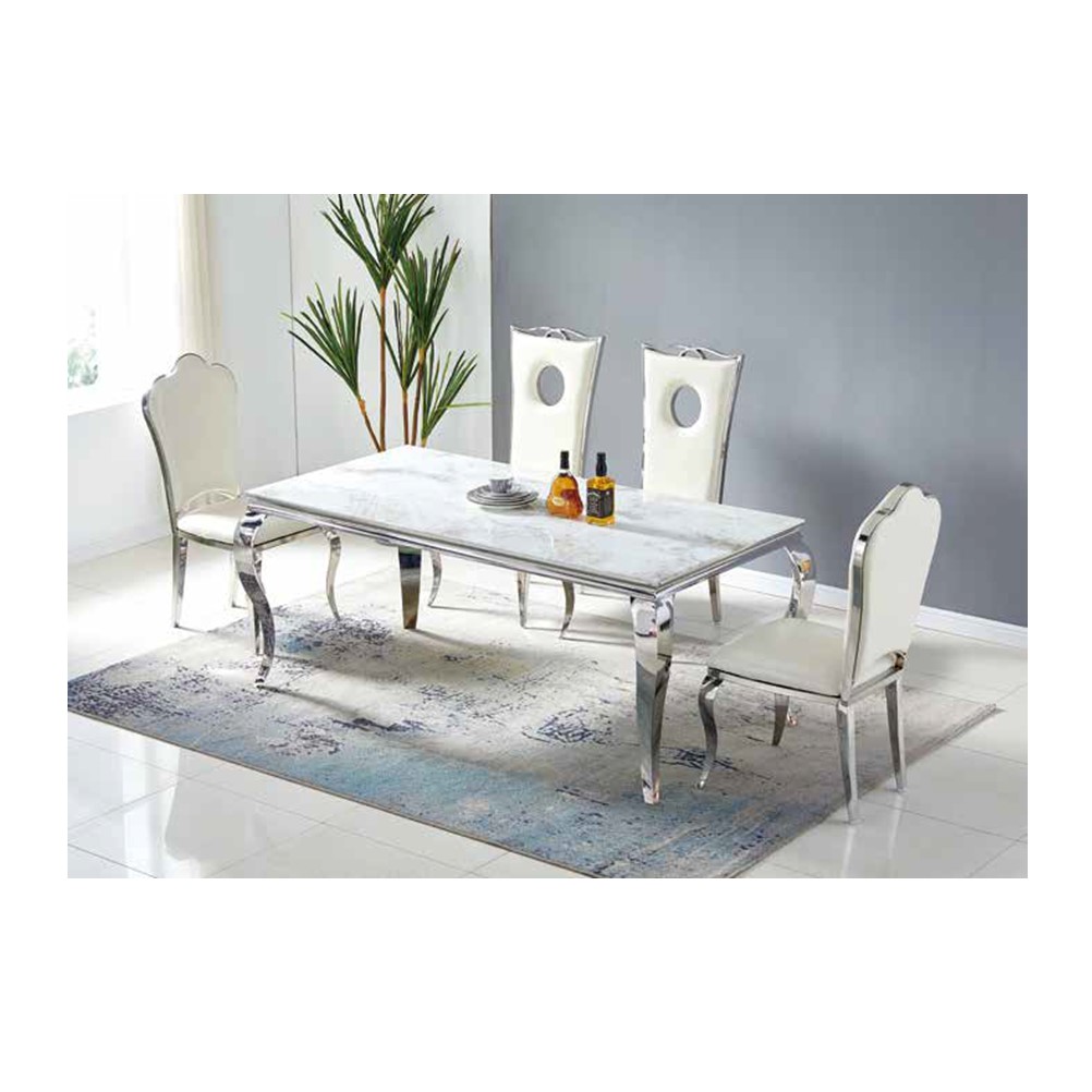Magnifique table à manger avec plateau en marbre. Design moderne, s’adapte à toutes décorations. Vendue au choix avec les chaises.