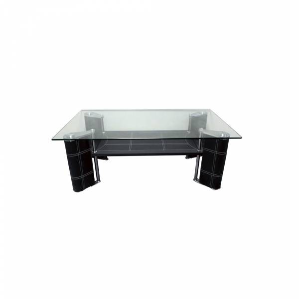 Magnifique table basse, plateau en verre et pieds en métal. Revêtement pieds en similis