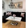 Elégante table basse design qui rendra votre décoration parfaite grâce à sa forme rectangulaire et son plateau en marbre. Structure en métal chromé.