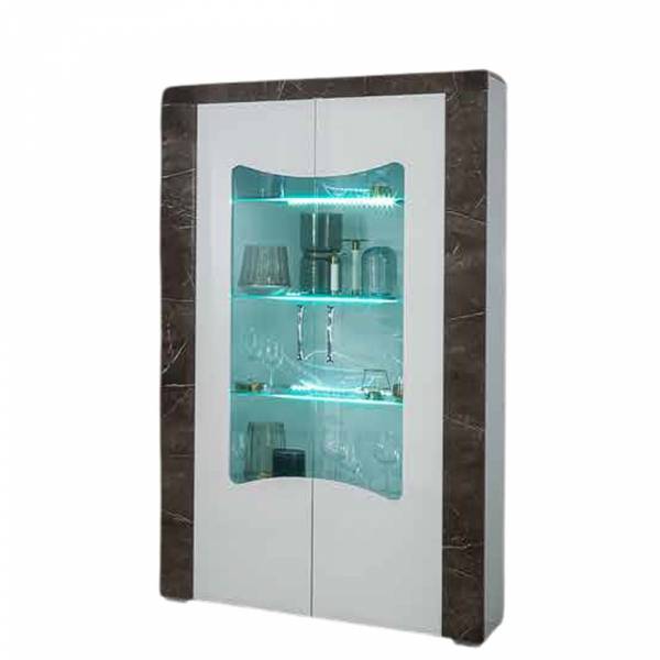 Magnifique vitrine salon moderne et tendance. Structure en bois laqué. Design conçu pour durer dans le temps qui illuminera votre décoration intérieure. Vitrine avec Led intégré