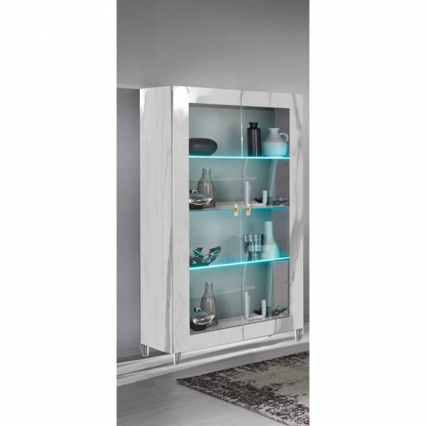 Magnifique vitrine de salon moderne et tendance. Structure en marbre. Led intégré.